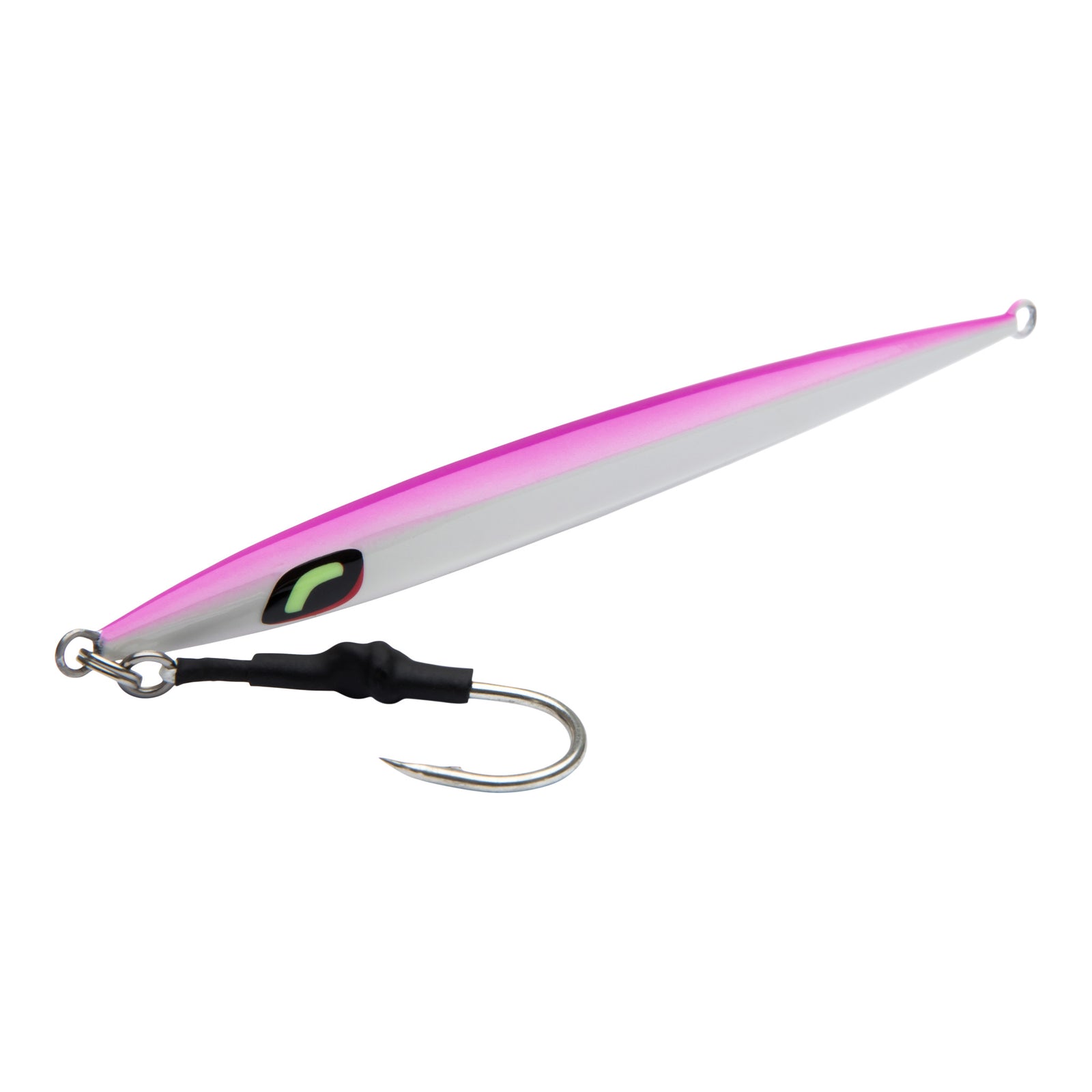 Shimano designed the SHIMMERFALL to sink fast and be easy for anglers to work. The jig's slender design enables it to quickly cut through the water, making it ideal for jigging in deeper water or fishing in fast drift situations. The SHIMMERFALL's design incorporates through-wire construction for added durability for increased confidence when fighting large game fish off the bottom. The SHIMMERFALL's tapered edges make the jig come to life with proper action using little effort, so it's sure to drive aggressive bites from bottom fish or pelagics alike.
