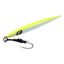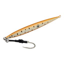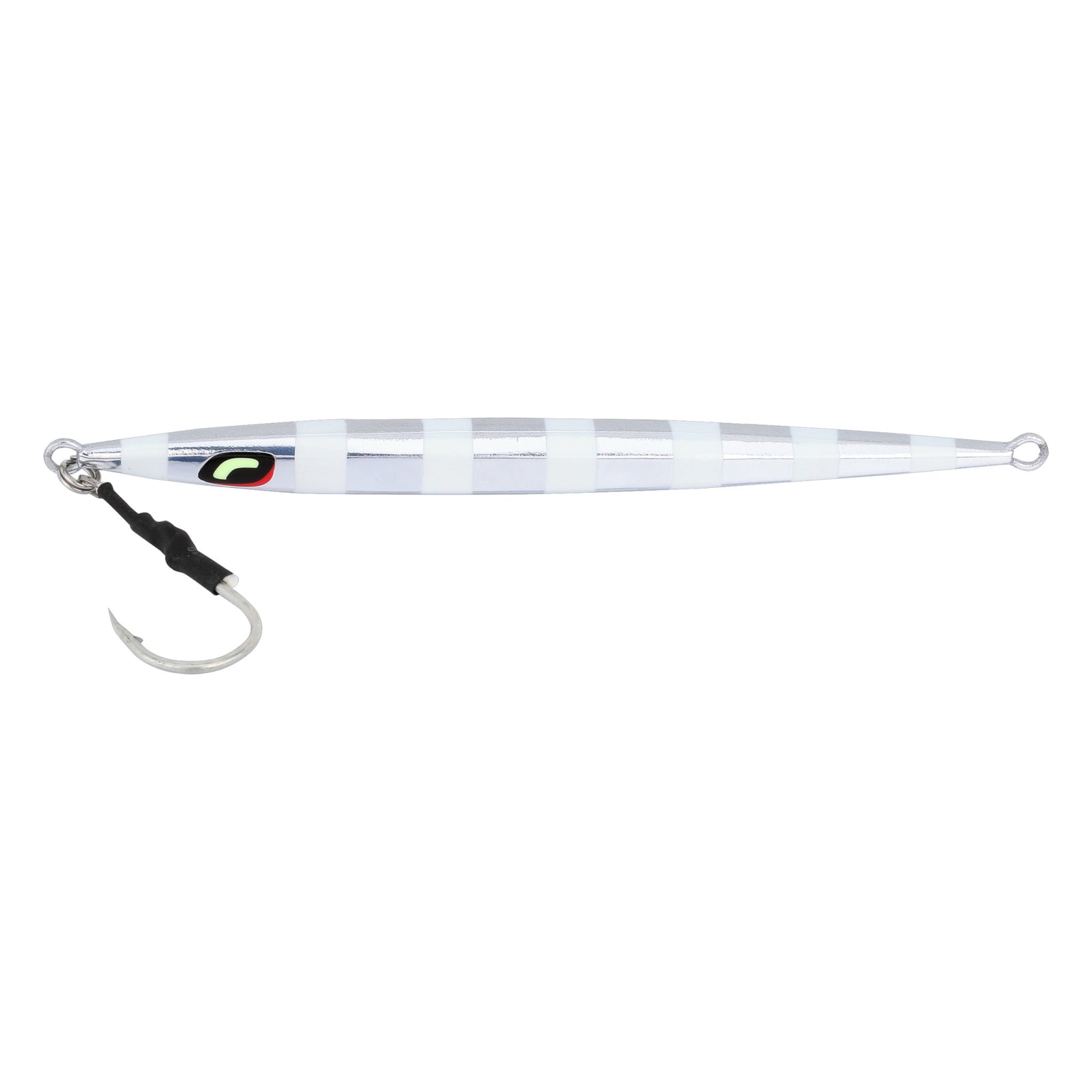 Shimano designed the SHIMMERFALL to sink fast and be easy for anglers to work. The jig's slender design enables it to quickly cut through the water, making it ideal for jigging in deeper water or fishing in fast drift situations. The SHIMMERFALL's design incorporates through-wire construction for added durability for increased confidence when fighting large game fish off the bottom. The SHIMMERFALL's tapered edges make the jig come to life with proper action using little effort, so it's sure to drive aggressive bites from bottom fish or pelagics alike.