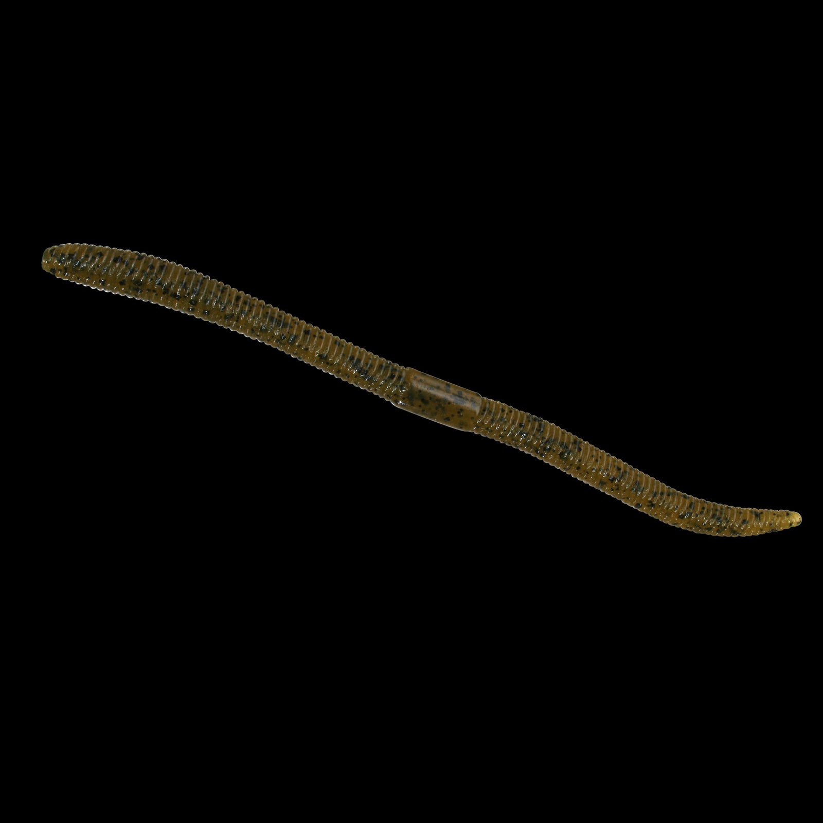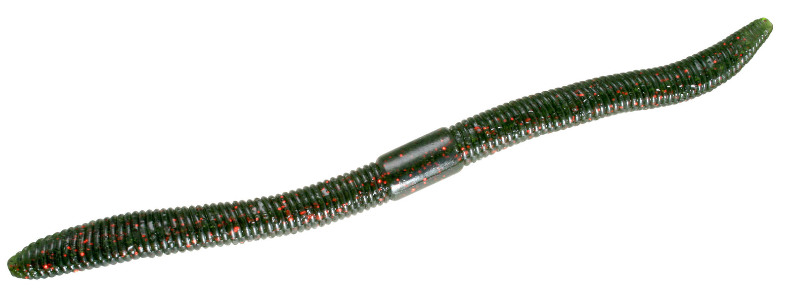 Jackall developed a specific Flick Shake worm and Jig Head that work together as a system. The Flick Shake worm has a built-in curved design, which creates a squirming action that the fish cannot resist. The Flick Shake worm is also salt injected and has a live bait scent. The jig head's eye is designed at a ninety-degree angle for better hook setting and fewer snags. The hook has a short shank to allow the worm more action. The tungsten weight allows the worm to sink faster and has a smaller head to create the right action.